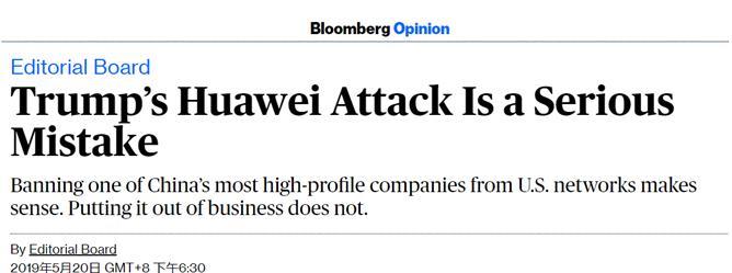 【环球网报道 记者 崔天也】上周,美国商务部将华为及其70余家关联公司列入“实体名单”。对此,美国彭博社20日发表了一篇题为《特朗普攻击华为是严重失策》的社评,列举三点理由解释为何特朗普不应“无所不用其极”地攻击华为。