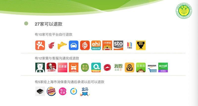 经上海市消保委沟通后,有5家网络平台承诺以后可以退款,分别是汉堡王(微信公众号)、每日优鲜、闪送、盒马、21CAKE。