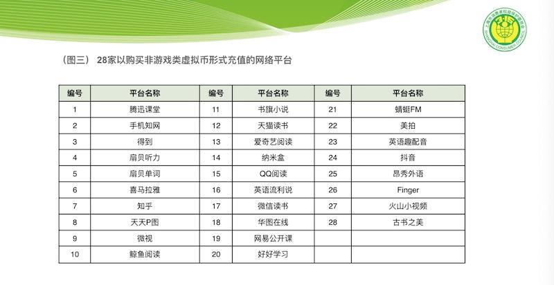 此外,上海市消保委还对28家以购买非游戏类虚拟币形式充值的网络平台开展消费体察。