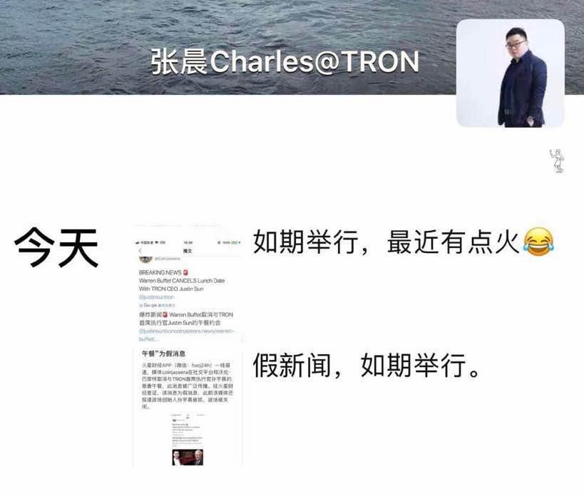 7月8日,针对币圈媒体Coinjazeera报道称巴菲特取消与孙宇晨的午宴消息,孙宇晨所在的波场回应腾讯《一线》称,该消息为假消息,午宴将如期在旧金山举行。