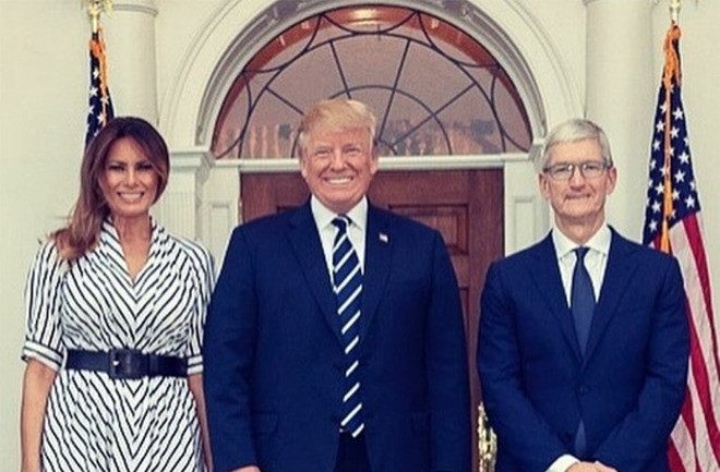 图:2018年,特朗普总统及第一夫人梅拉尼娅在新泽西州会见了苹果首席执行官蒂姆·库克