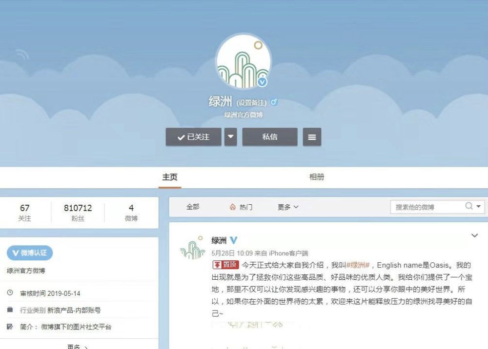 在今年5月28日,绿洲官方微博曾发布了一条介绍声明(目前已删除):