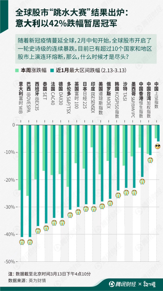 不仅是中概股,随着新冠疫情蔓延全球,从2月中旬开始,全球股市也开启了一轮史诗级的连续暴跌,已经超过10个国家和地区的股市上演连环熔断。