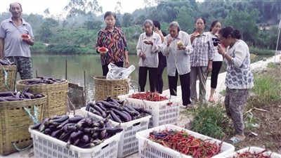 2017年10月17日,这一天是全国第4个扶贫日和第25个国际消除贫困日。璧山区丁家街道的丁二妹家庭农场内,丁二妹农场的负责人丁大书正与劳动妇女们一起劳作。